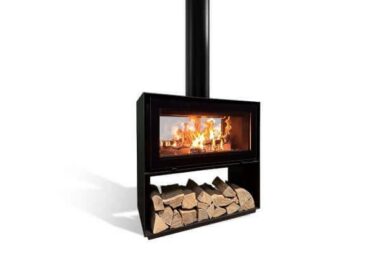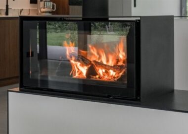 Metalluks annab sellele puukaminale tööstusliku ilme, klaasuks aga moodsama ilme.
