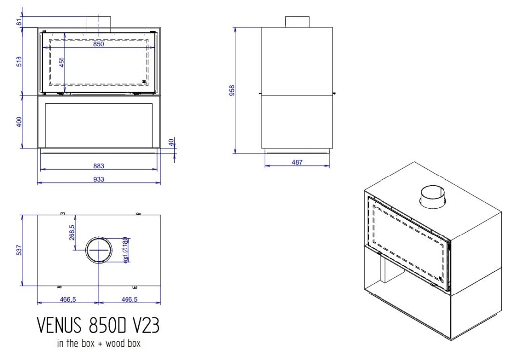 M-Design Venus MBox 850D puukasti mõõdud