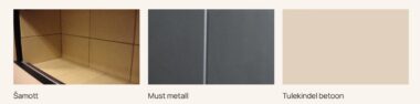 Kolde sisu valikud: Šamott (standard), tulekindel betoon või must metall.