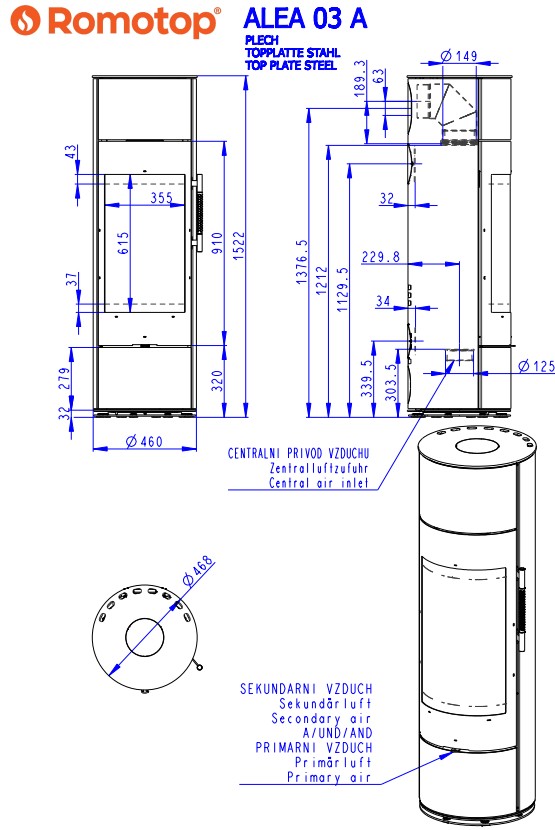Kamin ALEA A 03 Tehnilised andmed:
