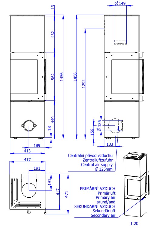 Võimalus ühendada kamin välisõhu sisselaske süsteemiga (EAI) muudab ESQUINA H mudeli sobivaks just passiiv- ja madala energiavajadusega majadesse.