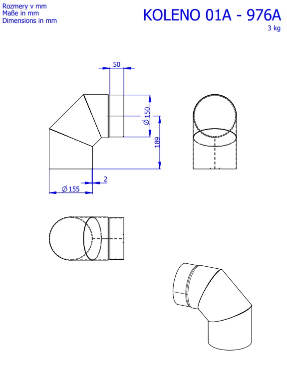 - Põlv (150/90/2 mm) – paindlik suitsutoruühendus