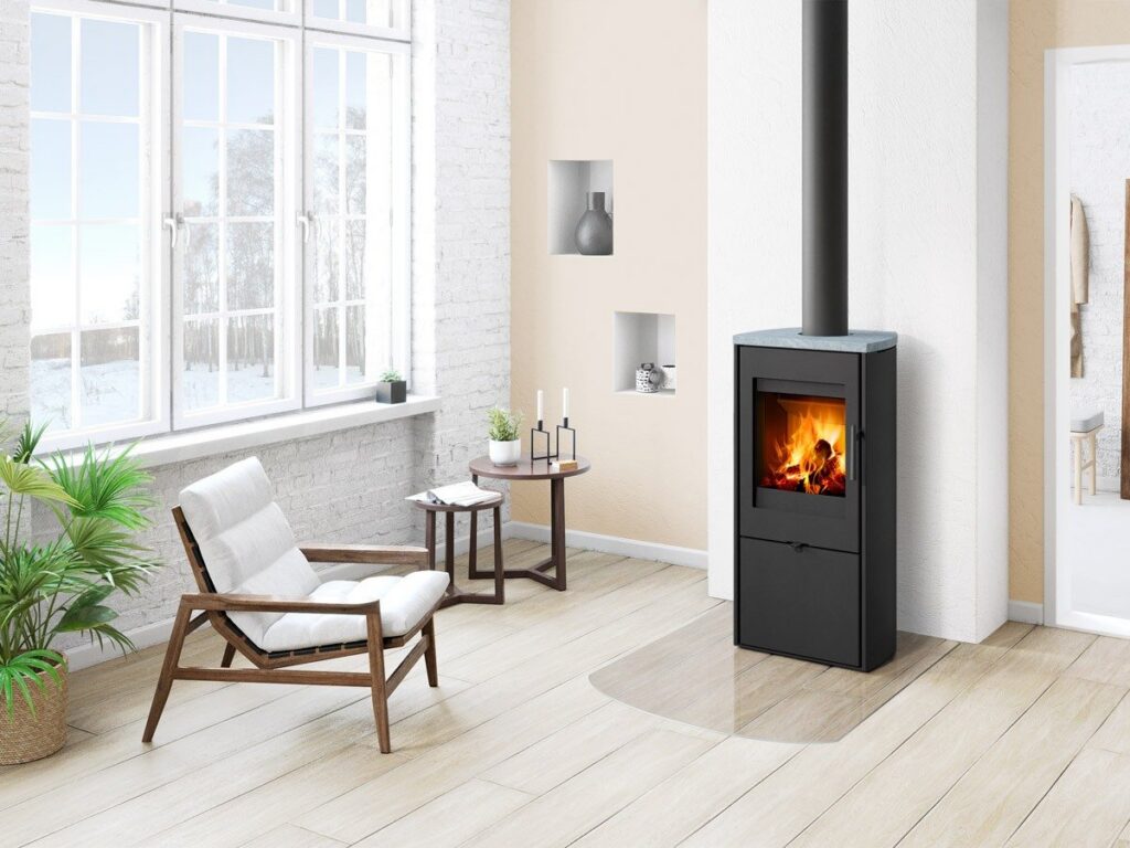 Kiviplaat mitte ainult ei kaunista kaminat, vaid lisab ka soojust salvestavat võimekust ja kestvust.